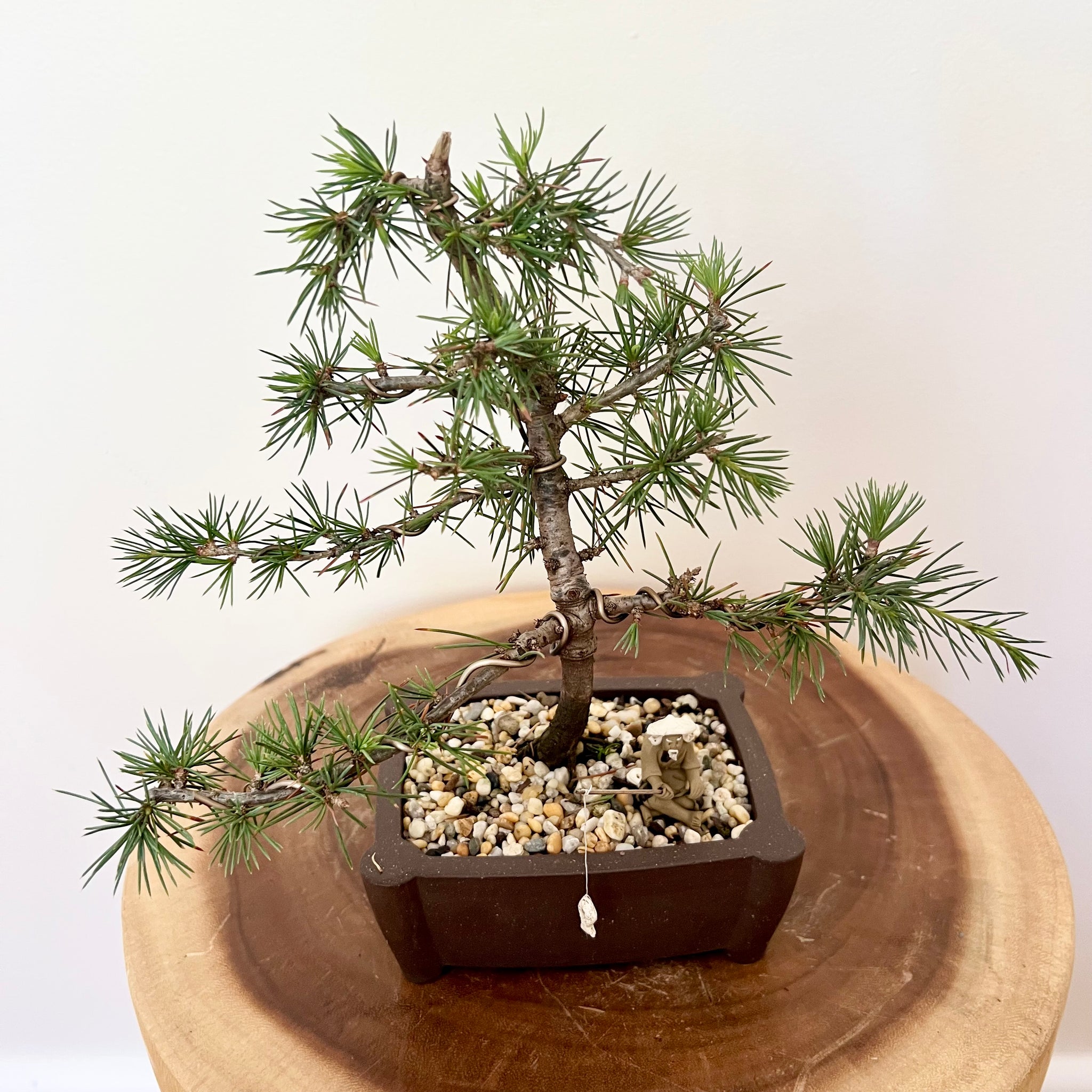 Highly sought after atlas cedar bonsai roughly 25cm tall housed in a unique 13cm wide handmade bonsai pot with drainage hole.