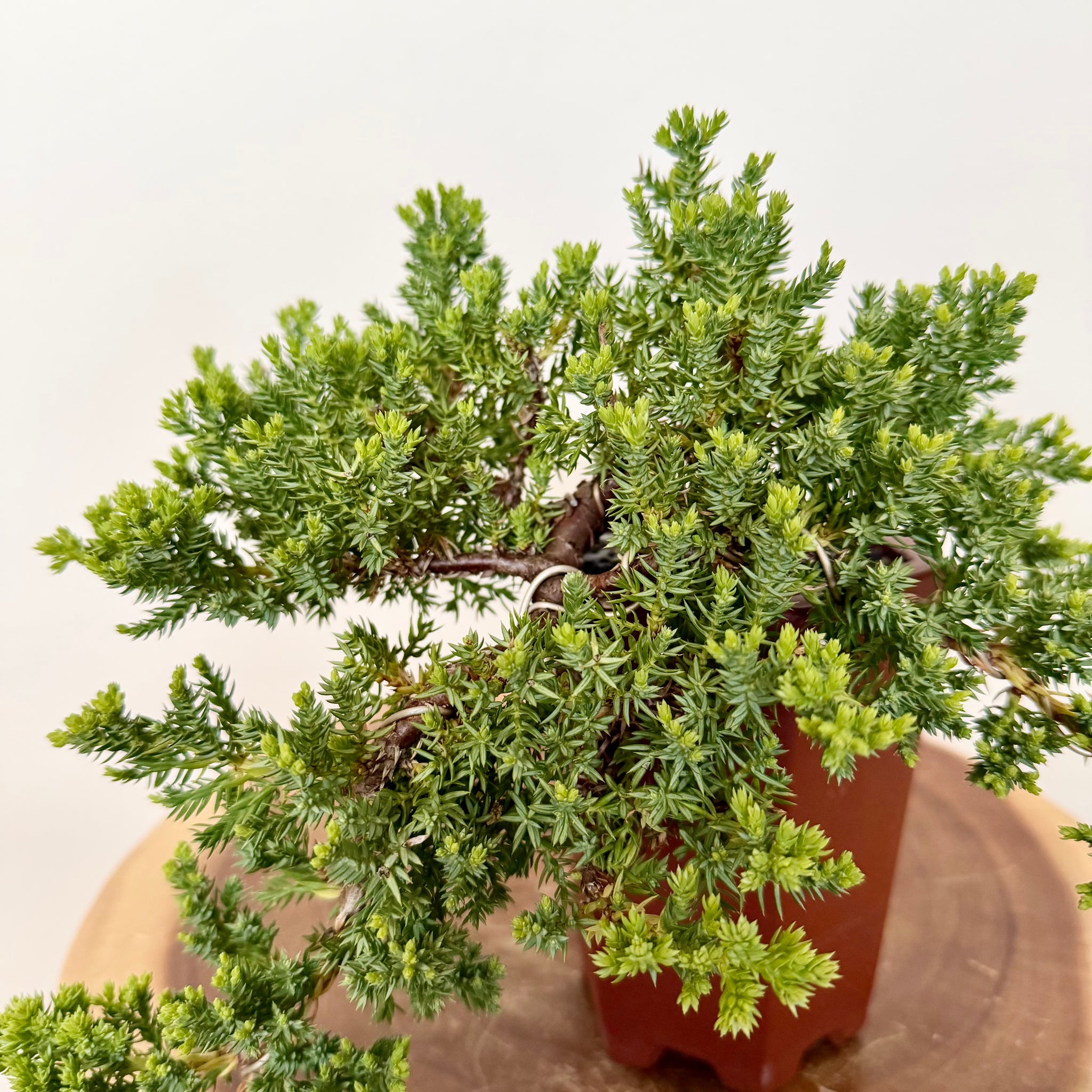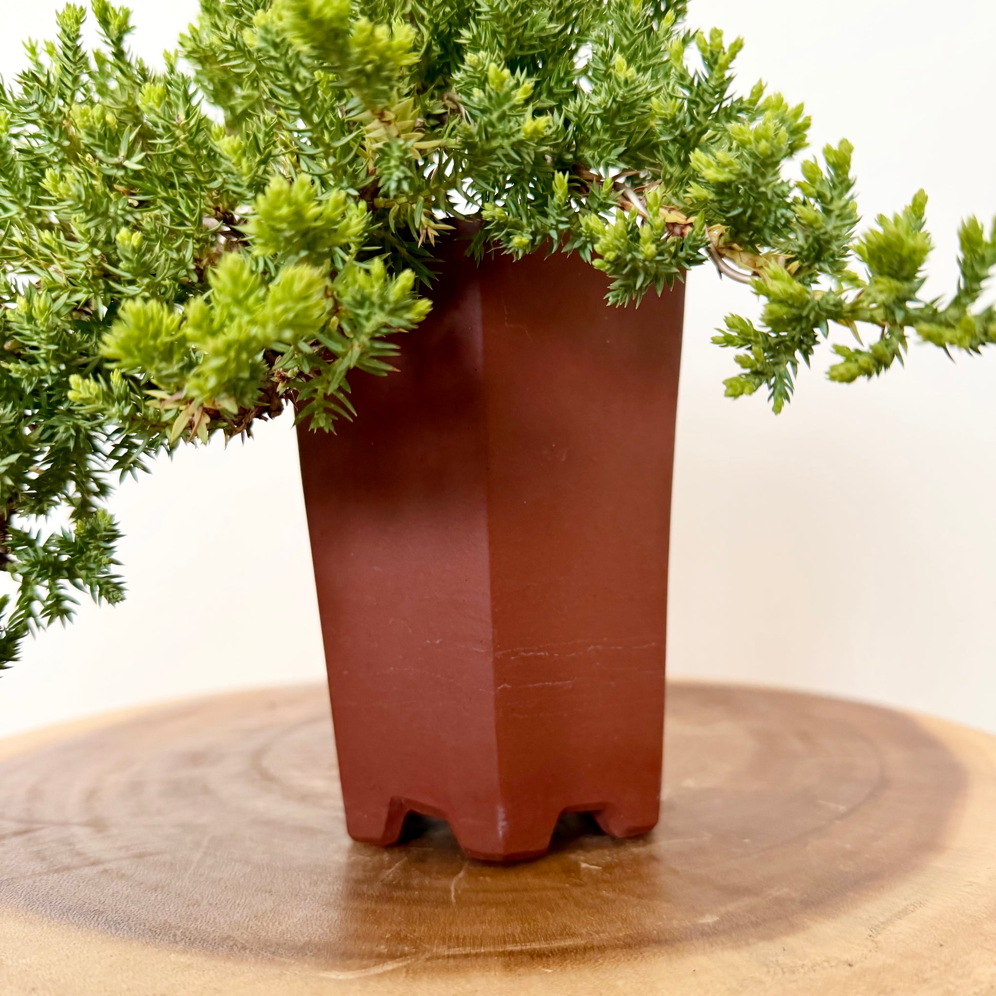 Highly sought after juniper bonsai roughly 22cm tall and 24cm across housed in a unique 9cm wide handmade zisha clay bonsai pot with drainage hole.