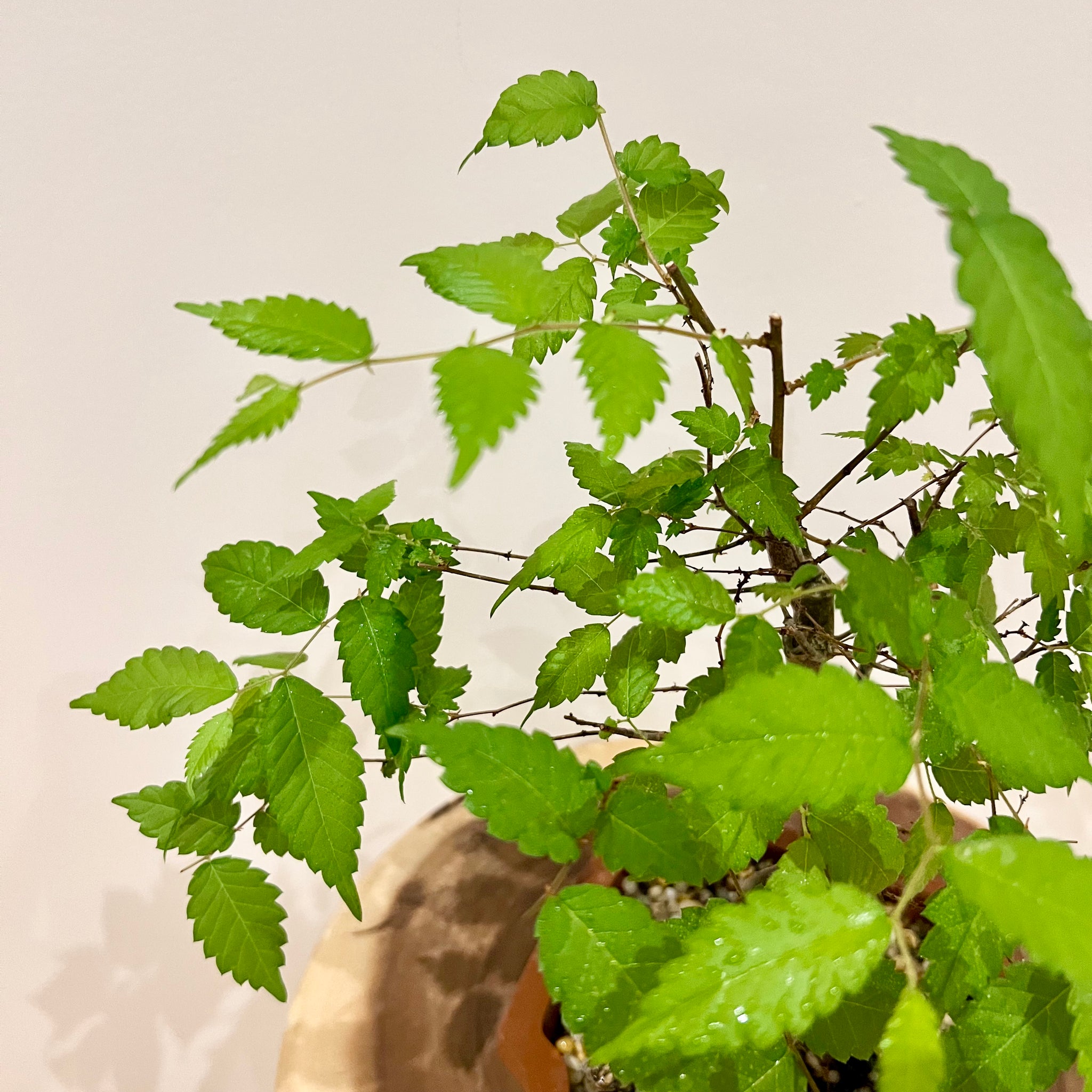 The Japanese Elm is a deciduous tree that is a staple for bonsai collection. It’s tree bark is grey and smooth and its young shoots are reddish at first. The leaves are simple and ovate with serrated margins, rough on top and glabrous on the underside.