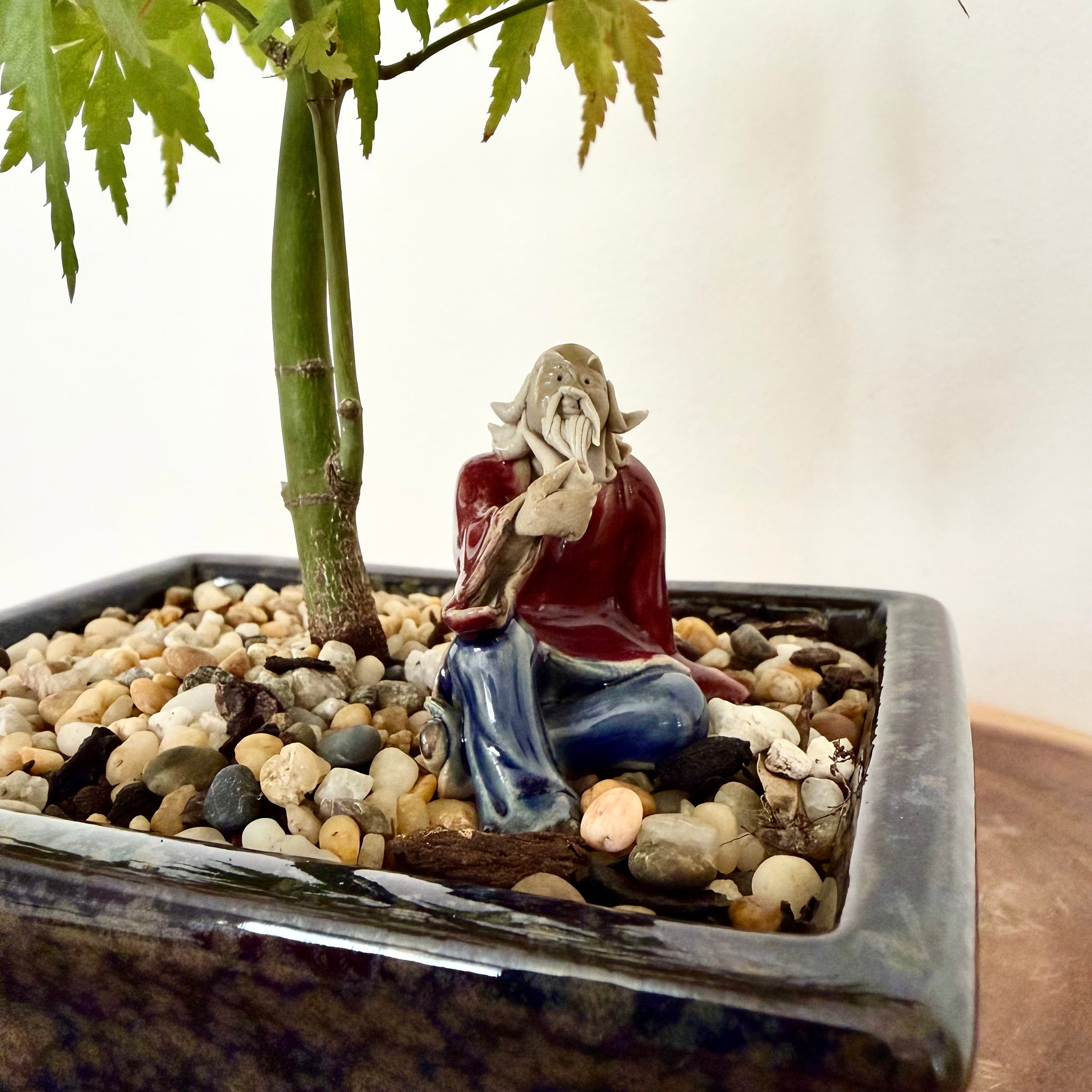Total plant height is roughly 32cm tall and is housed in a 14cm wide handmade ceramic pot with drainage hole.