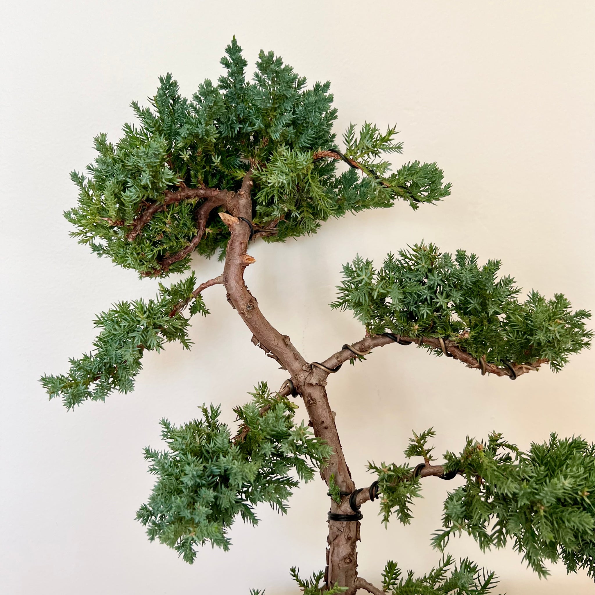 Highly sought after juniper bonsai roughly 50cm tall housed in a unique 30cm wide handmade zisha clay bonsai pot with drainage hole.